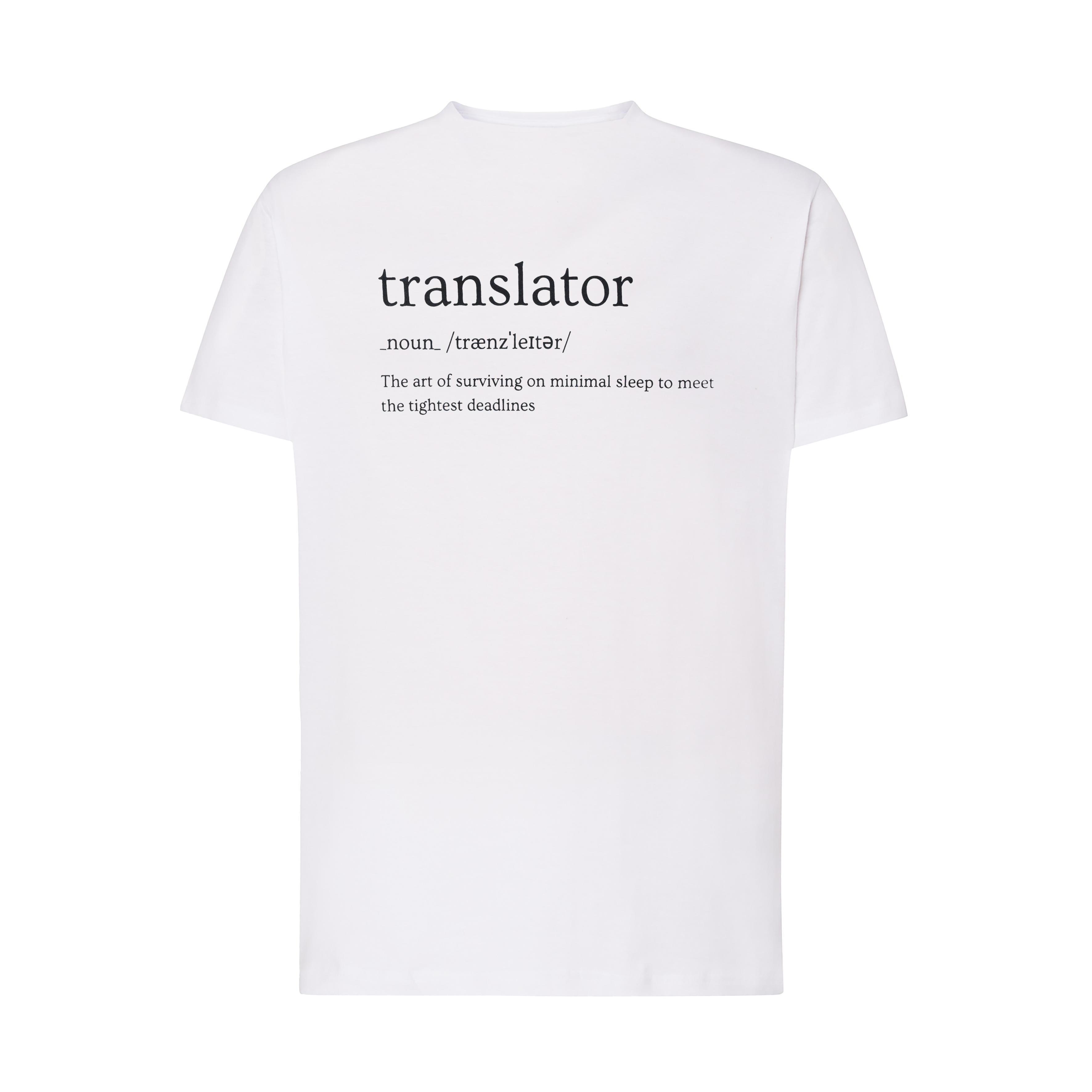 Lleva tu profesión con orgullo con esta camiseta blanca de algodón 100%. Su diseño simple y directo con la palabra «Translator» estampada la convierte en una prenda ideal para cualquier traductor. La camiseta es cómoda, ligera y fácil de combinar, gracias a su textura suave que se adapta a tu cuerpo y estilo. Con tallas S, M y L, puedes elegir la que mejor se ajuste a ti y disfrutar de la calidad de una prenda pensada para el día a día.